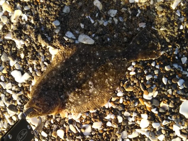 先着アングラーに声をかけると、ちょうど40cm強のヒラメを掛けたところとのこと。